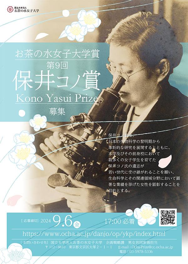 保井コノ賞は、保井コノ博士の日本の大学初の女性理学博士としての生命科学研究への貢献と業績を讃えると共に、女性研究者の活躍を願って設立した賞で、お茶の水女子大学賞の1つとして位置づけられている
