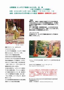 講演では、8世紀~14世紀まで東南アジアで大きな国を作り文化も栄えたカンボジアの古典舞踊の歴史や、その豊かな自然や宇宙観を背景として生まれた舞踊の意味について、解説いたします。