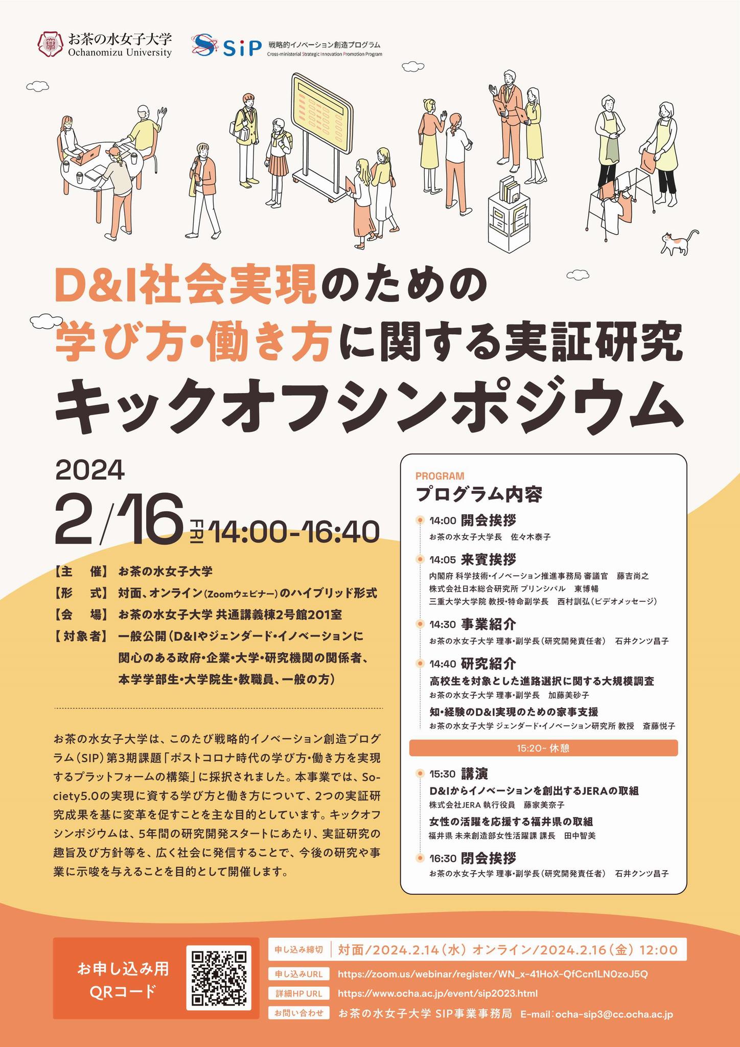 お茶の水女子大学は、このたび戦略的イノベーション創造プログラム(SIP)第3期課題「ポストコロナ時代の学び方・働き方を実現するプラットフォームの構築」に採択されました。本事業では、Society5.0の実現に資する学び方と働き方について、2つの実証研究成果を基に変革を促すことを主な目的としています。