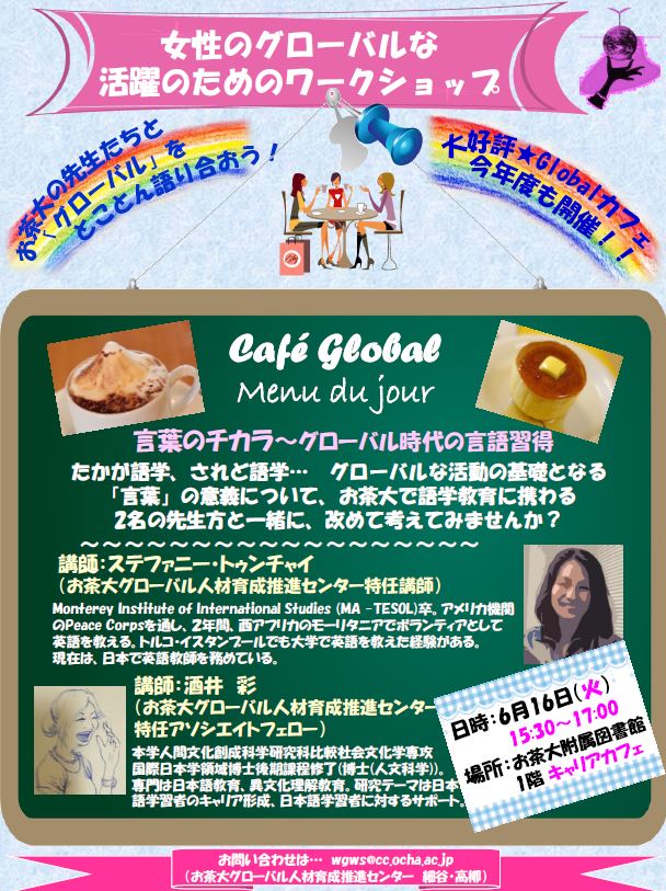 グローバル人材育成推進センター・リーディング大学院推進センター主催による、「女性のグローバルな活躍のためのワークショップ」 2016年度第六回を開催します!