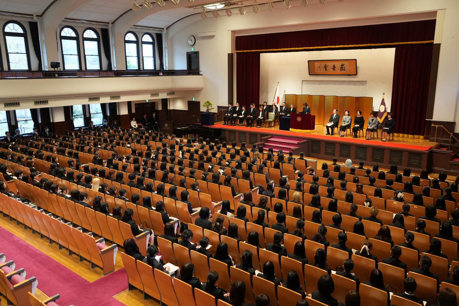 この校歌にもあるように、これから始まる学生生活では、失敗を恐れず、勇気をもって歩み、広く異分野にも関心を持ち、さまざまなことを実際に経験し、体験することをとおして多くのことを吸収し、自分自身を磨いていただきたいと思います。大学は、全力をあげて、皆さんの努力を後押しすることをお約束します。そして新しくお迎えした、皆さんとともに、お茶の水女子大学もまた、SDGsを志向し「誰一人取り残さず、一人ひとりの多様な幸せを実現できる社会」の構築に資するよう貢献してまいりたいと決意を新たにしています。