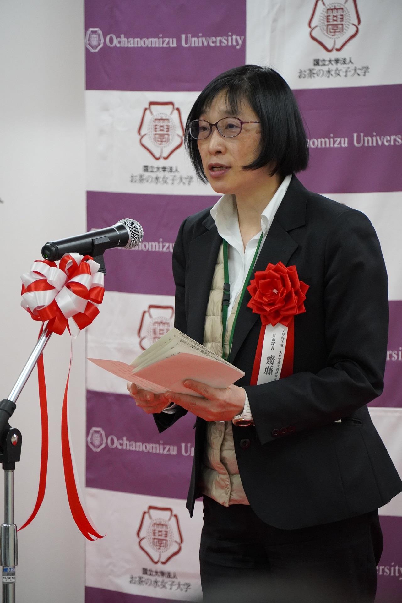 はじめに、佐々木学長の式辞、続いて、齋藤様、島貫様から来賓祝辞がありました。