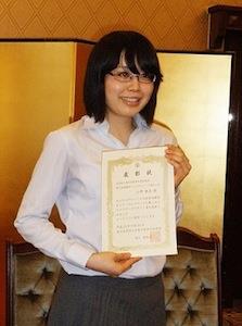 表彰式では羽入学長から賞状が、続いて河村センター長から賞品が授与されました。式後には学長、センター長が小野さんと和やかに歓談されました。