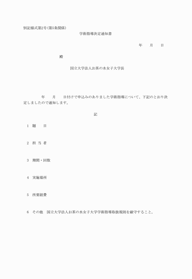 第4条 学術指導の申込みをしようとする者があるときは、学長あてに学術指導申込書(別記様式第1号)を提出しなければならない。