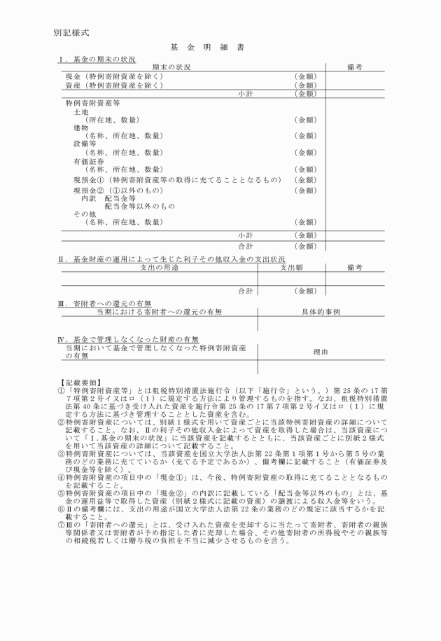 2 学長は、毎事業年度終了後3月以内に、基金明細書を文部科学大臣に提出するとともに、寄附者に写しを交付するものとする。